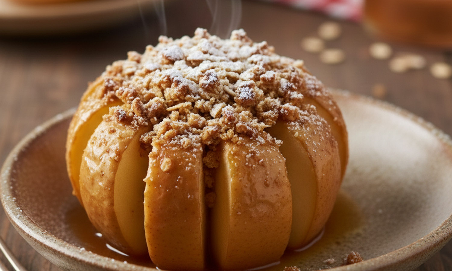 For the filling, combine ¾ cup rolled oats, ¼ cup dried cranberries, 2 tablespoons chopped walnuts, 2 tablespoons apple cider, and 1 teaspoon cinnamon. Spoon this mixture into the centers of the baked apples and bake, uncovered, for an additional 15 to 20 minutes.
